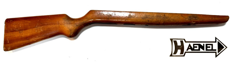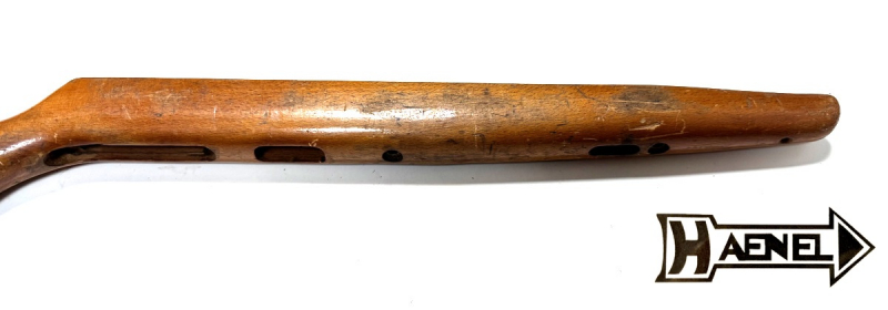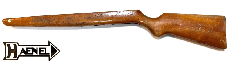 -mit zwei Schaftschraube vor dem Abzugsbügel -mit Bohrungen für Riemenbügel -mit L/11 gestempelt (linke Seite) -mit GST / 328996 (Waffennummer) gestempelt (rechte Seite) -kleiner Holzausriss am Schaftende (siehe Bild), hat aber keine Auswirkungen auf Funktion -original Bestellnummer aus HAENEL 310 Ersatzteileliste: 0853302201